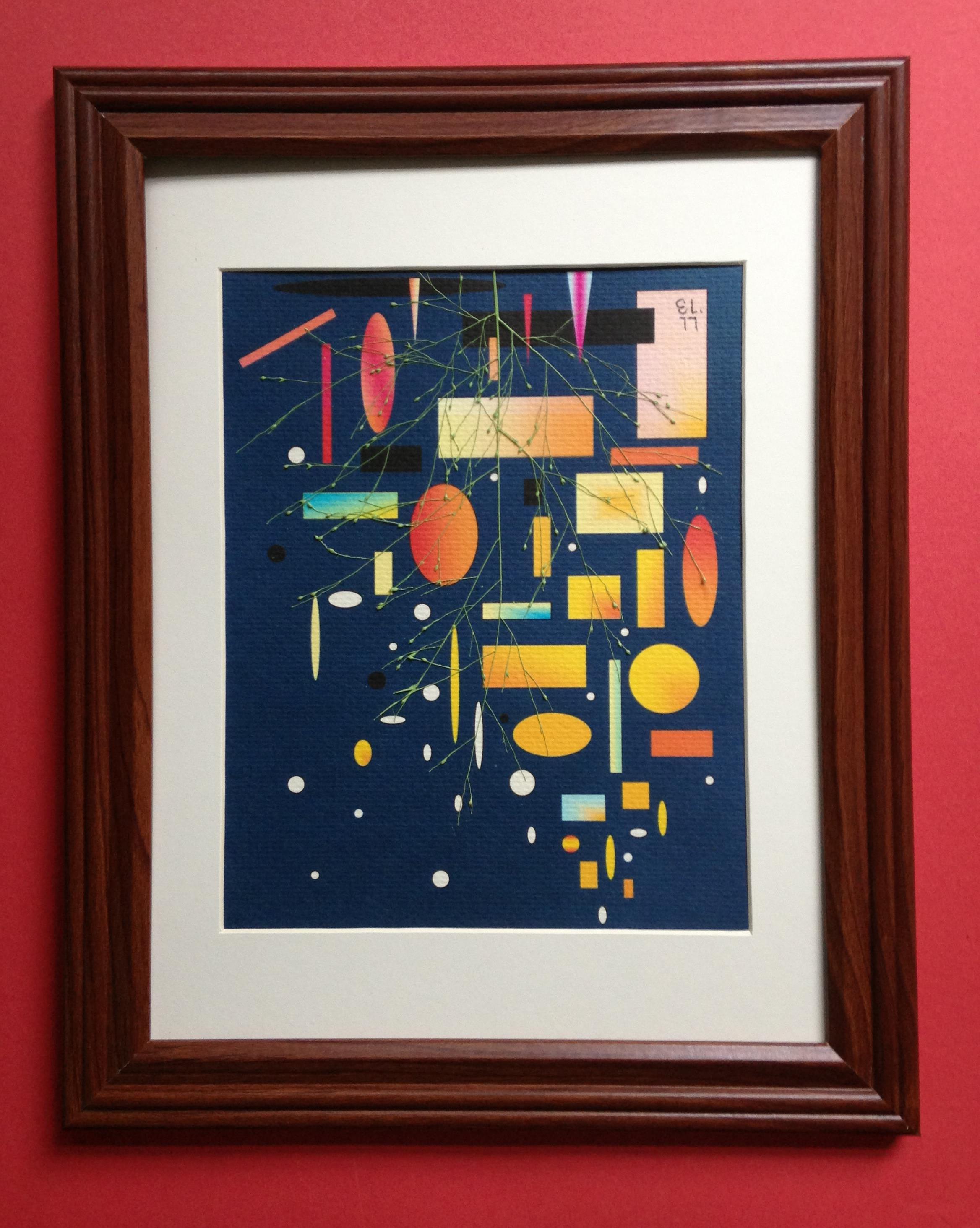 Back at the turn of this new century, I made a big series of large works on canvas that incorporated metal washers. For me, they have passed the test of time so I decided to miniaturize the concept and incorporate my current resin-coated works on wood panel – some with pressed plants and – gasp – some without.