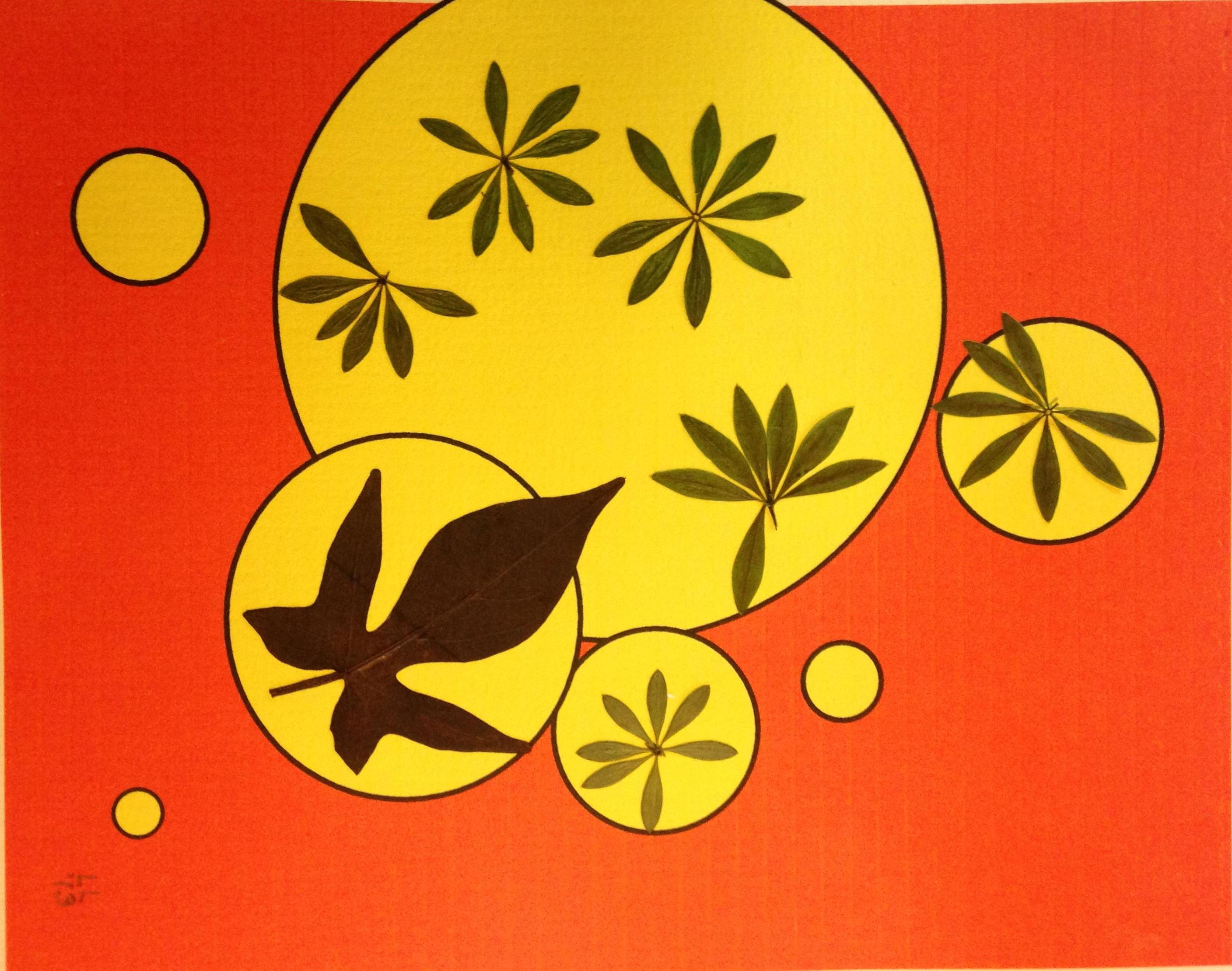 For the real plants in the foreground, I chose a mix of weeds and garden plants — wild grass seed heads, a piece of Japanese maple, and a little leaf of curly coleus.