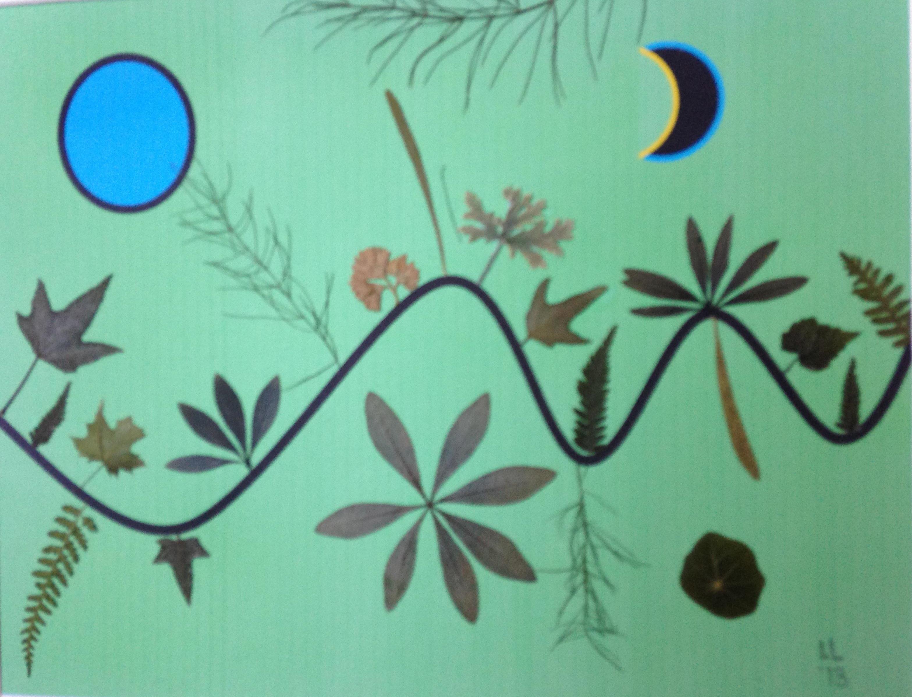 Still, some plants are more likely to continue to change after mounting than others. While such changes do not detract from the beauty of the compositions in my mind, I still take steps to preserve my original colors. First, after mounting leaves on my graphics, I paint them with a specialized dried material preservative that includes UVA and UVB protenction. Next, I spray each finished composition with an acrylic finish before matting and framing. This also contains a layer of UV protection and prevents fading of the botanicals as well as the underlying graphics.